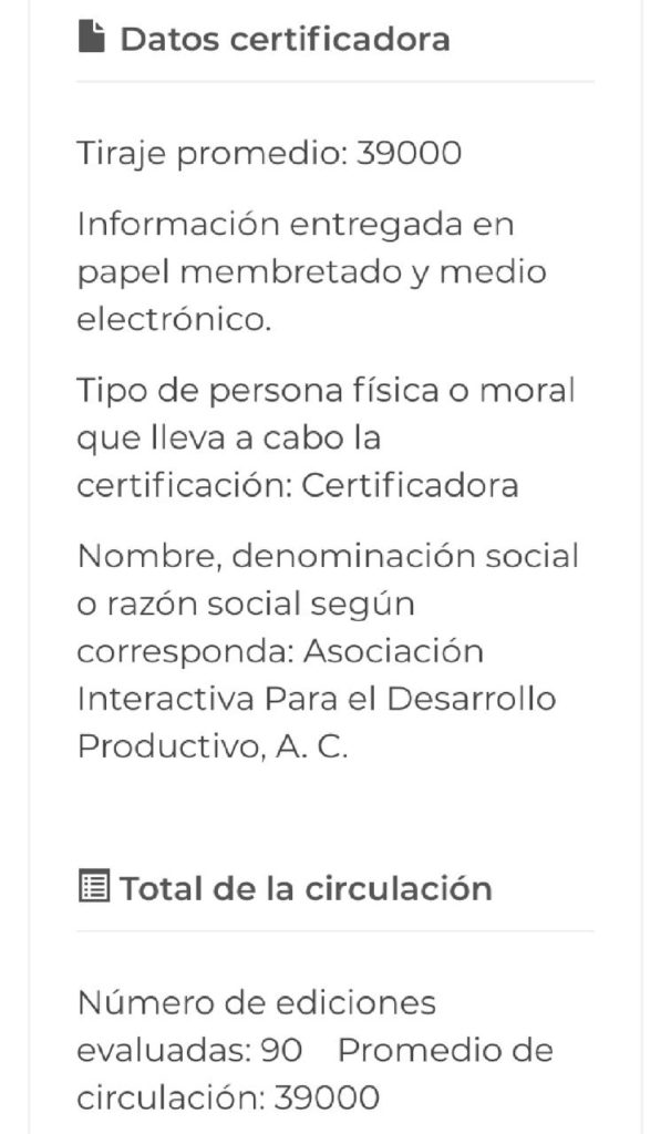 El monto del certificado ni siquiera coincide con los 39 mil ejemplares diarios que declaran tener, gravísima irregularidad que apuntaría a un posible acto de corrupción en esta dirección federal, con la que se perpetró un millonario robo a las arcas públicas.