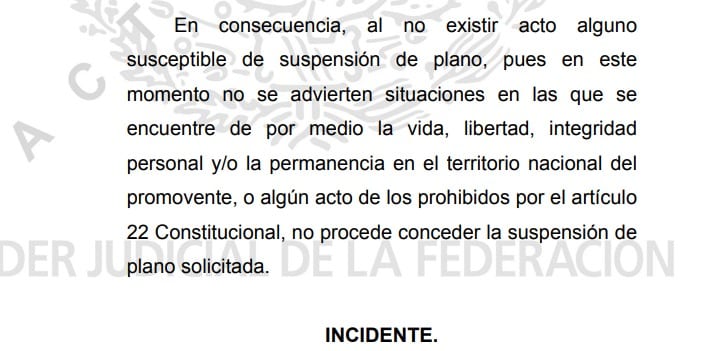 Sin embargo, sería hasta dos días después que este trámite fue turnado a un juez, quien de entrada NEGÓ la protección federal que buscaban, al contravenir esto la constitución mexicana; de todas formas, fijó una audiencia para diciembre, con el fin de escuchar los argumentos del promovente.