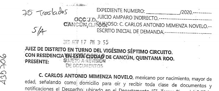 Mimenza Novelo fue detenido el pasado miércoles, 18 de noviembre, al tener una orden de aprehensión girada por un juez de Quintana Roo, acusado de extorsión, delito por el que ya está vinculado a proceso, al existir suficiente evidencia en su contra para ameritar un juicio. Este empresario millonario, con amplios nexos políticos y contactos al interior de los tribunales, ya sabía de antemano de esta causa, por lo que su abogado, Lucio Castillo González, ingresó un día antes una solicitud de amparo.