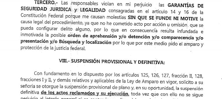 De haber tenido amparo, ¿no sería lógico haberlo mostrado? Si ya intentaba huir del estado, ¿no era importante tener ese documento consigo?, ¿por qué no lo imprimió? En el video, trataba de mostrar en su celular el supuesto “amparo”, que era solo el documento que ingresó y que todavía no era contestado.