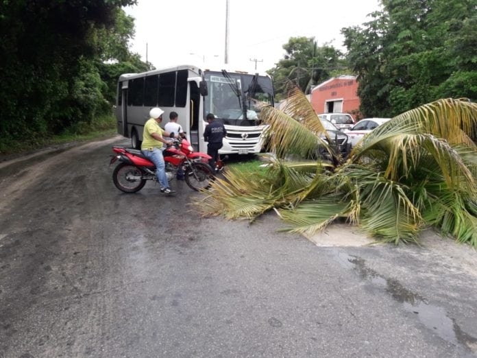 El conductor de una motocicleta Honda Biz roja circulaba de norte a sur sobre la avenida mencionada, cuando derrapó sobre el pavimento mojado. Detrás suyo venía un autobús de transporte de personal, del hotel Presidente Intercontinental, cuyo conductor reaccionó y “volanteó” para evitar pasarle las llantas sobre el motociclista, aunque al hacer esto terminó estrellado contra una palmera en el camellón central.