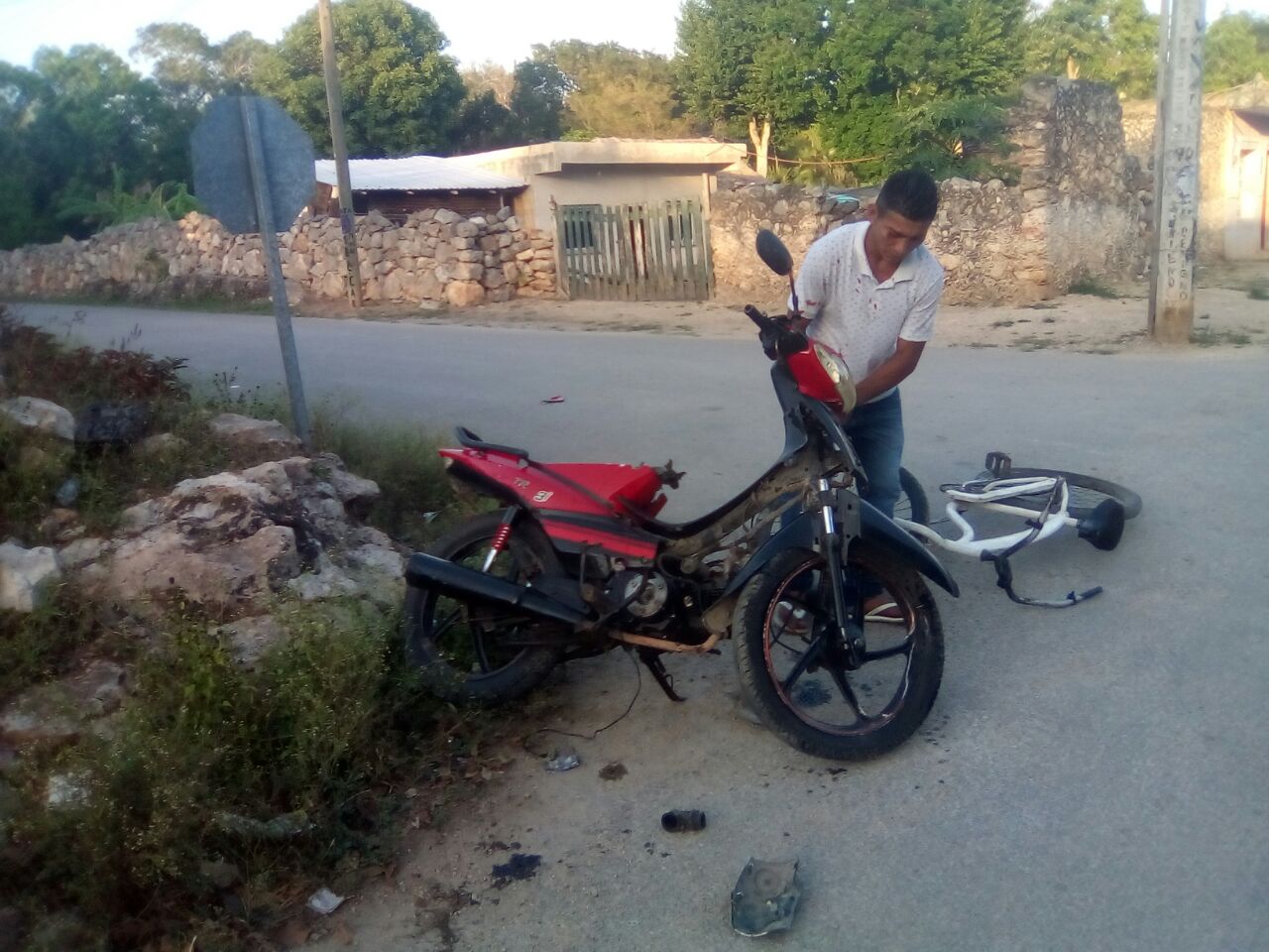 Felipe Carrillo Puerto.- Un motociclista en estado de ebriedad casi atropella a unos niños en las afueras de Tihosuco y terminó su carrera dentro de un terreno.