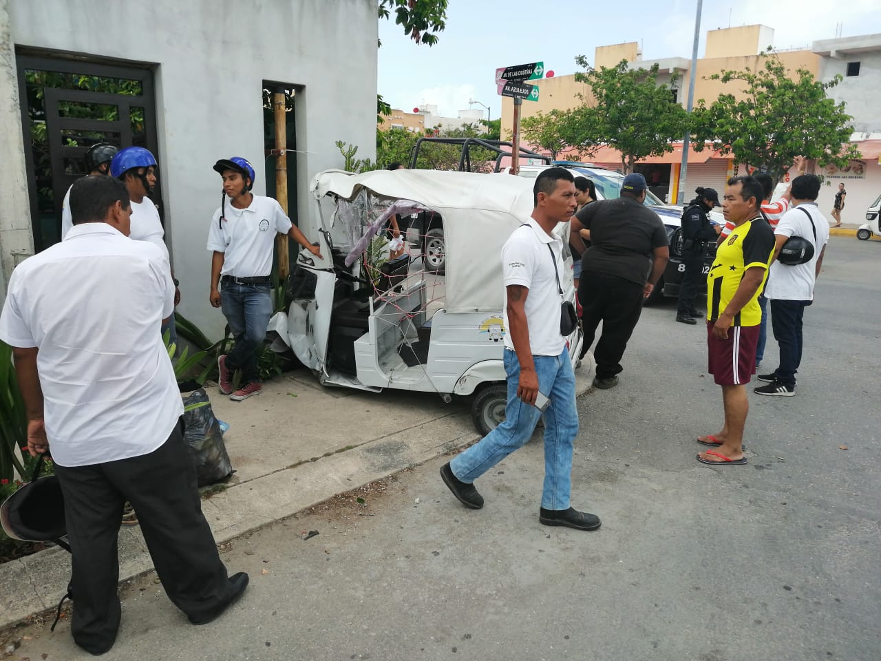 Playa del Carmen.- Como si fuera una bola de billar, un mototaxi fue proyectado más de tres metros luego de ser golpeado por una camioneta, hasta estrellarse contra una casa, en el fraccionamiento Villas del Sol, accidente en el que solamente hubo daños materiales.