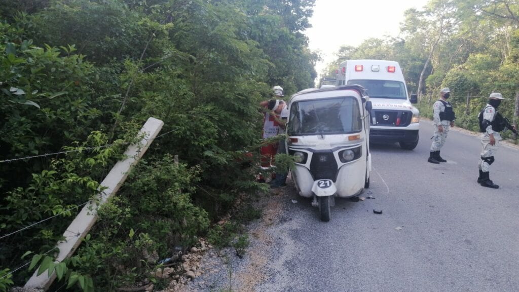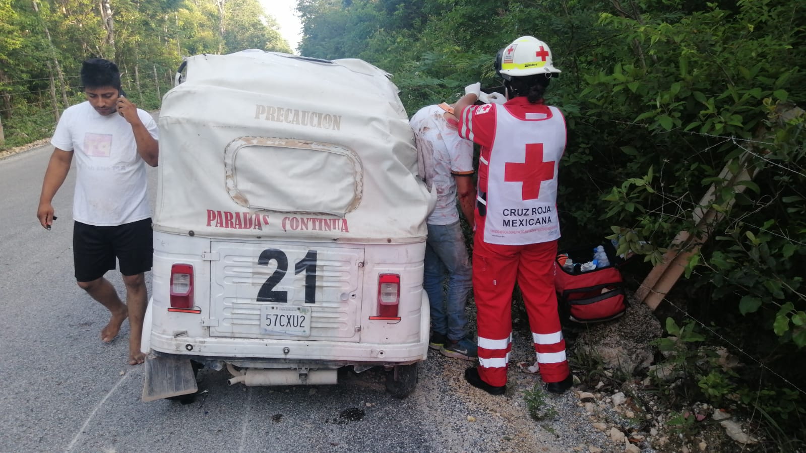 Playa del Carmen.- Un mototaxista se accidentó esta mañana cuando circulaba en un camino de terracería rumbo a la colonia Nuevo Noh Bec, al poniente de la ciudad.