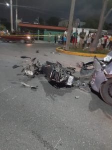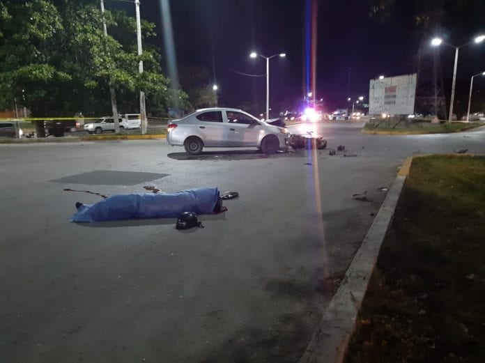 Cancún.- El conductor de un automóvil particular se voló el alto obligatorio y colisionó de manera aparatosa a una motocicleta, el sujeto a bordo de la misma perdió la vida casi de manera inmediata.