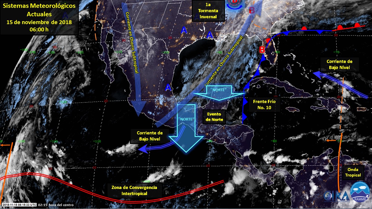 Playa del Carmen.- El Frente Frío número 10 cruzó durante la tarde y noche de ayer la Península de Yucatán. Por el momento se extiende desde el norte de la Florida, occidente de Cuba y Noroeste del Mar Caribe.