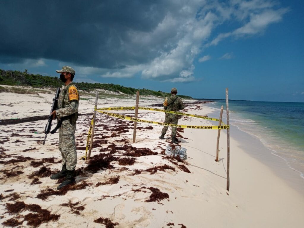 La Secretaría de la Defensa Nacional (Sedena) informó sobre estos hechos a través de un comunicado, donde además detalló que el hallazgo tuvo lugar durante reconocimientos vía terrestre a la orilla de la costa; sin embargo, no se dio detalles sobre el tipo de droga que fue descubierta, ni su peso.
