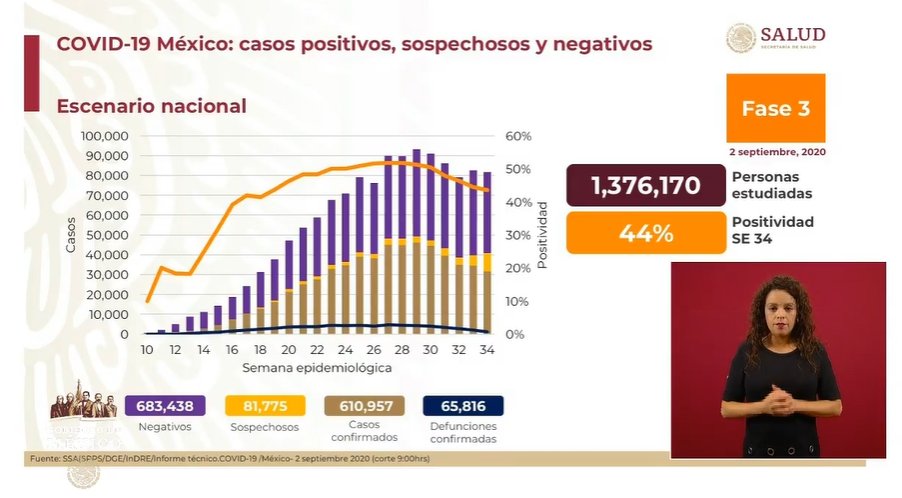 Este miércoles la Secretaría de Salud notificó que ya suman 610 mil 957 casos confirmados de coronavirus en México, de los que 40 mil 599 son casos activos estimados.