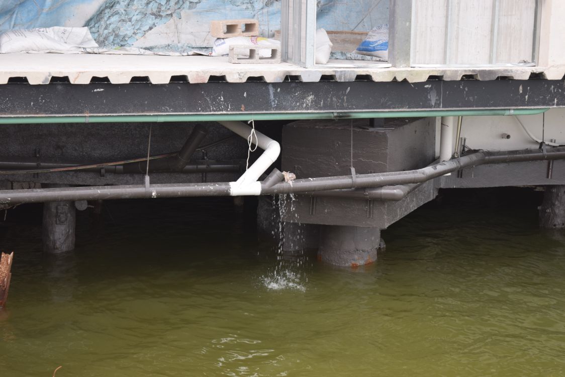 Cancún.- El clausurado “Sr Frogs Hotel and Hostel”, en la Zona Hotelera de esta ciudad, tiene una fuga de agua, posiblemente negra, que cae de forma directa sobre la laguna Nichupté.