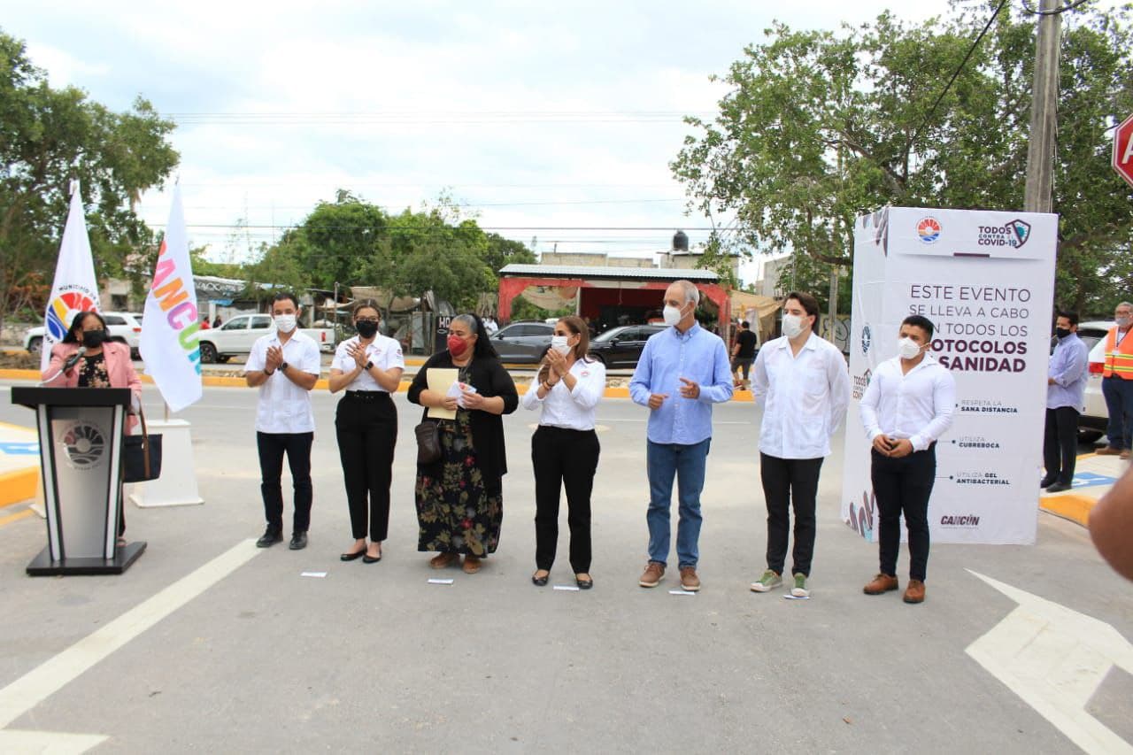 Autoridades municipales inauguraron las obras concluidas en las supermanzanas 89 y 227 de Cancún, consistentes en la pavimentación y mejoramiento de tramos de las avenidas cercanas a esas zonas como Costa Maya, Francisco I. Madero, Diagonal Tulum y Calle 17.