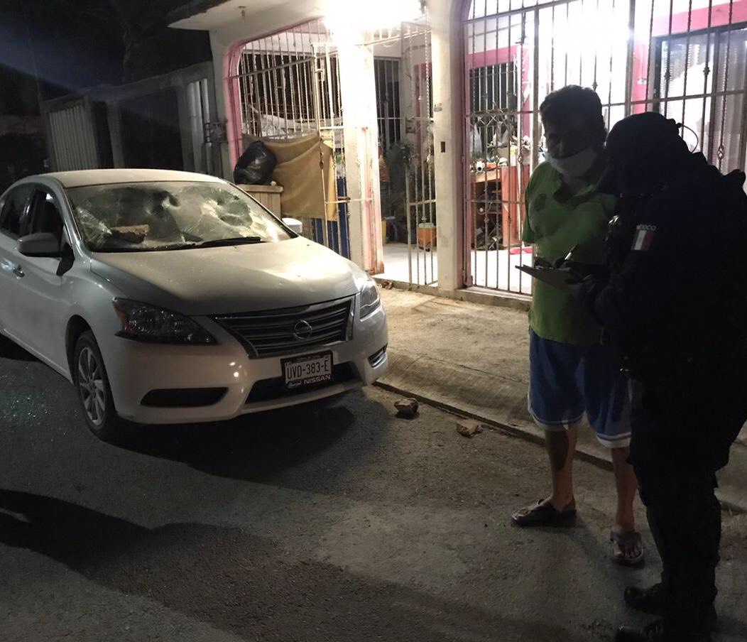 Cancún.- Ocho presuntos ladrones se encontraban hurtando una casa en la Región 237, pero al retirarse del lugar apedrearon un automóvil de uno de los vecinos.