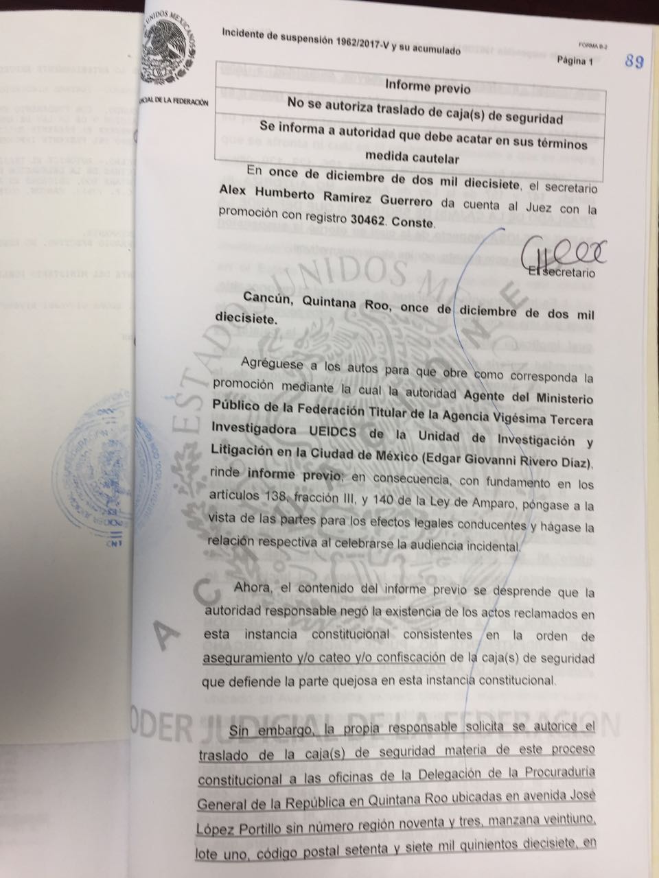 Cancún.- El juez séptimo de Distrito con sede en Cancún, Darío Alejandro Villa Arnaiz, ordenó que el contenido de las cajas de seguridad no se muevan de las instalaciones de la empresa FNS, ante la falta de respuesta de la SEIDO al no cumplir con una orden de inspección judicial.