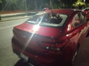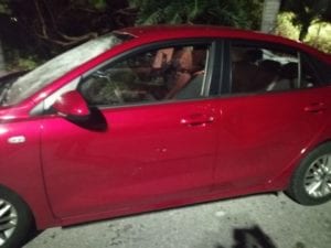 Como el video permite apreciar los cristales de las puertas están completamente destrozados. El auto en cuestión es un Kia Río 2020 de color rojo. Y es que como el operador relata estos taxistas se bajaron a querer sacarlo a la fuerza de la unidad y como no pudieron, con palos, piedras y tubos golpearon a diestra y siniestra el vehículo