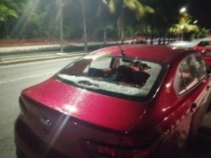Incluso en el video se aprecia al interior de la unidad una de las piedras que fueron arrojadas. Aquí puedes ver el video de la lamentable agresión contra este operador de Uber.