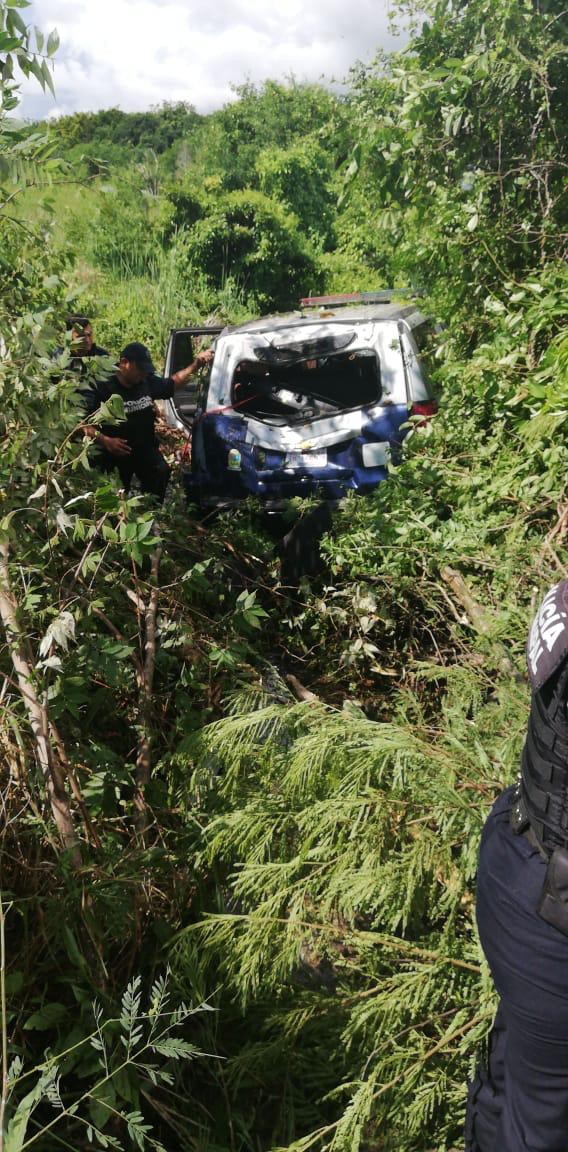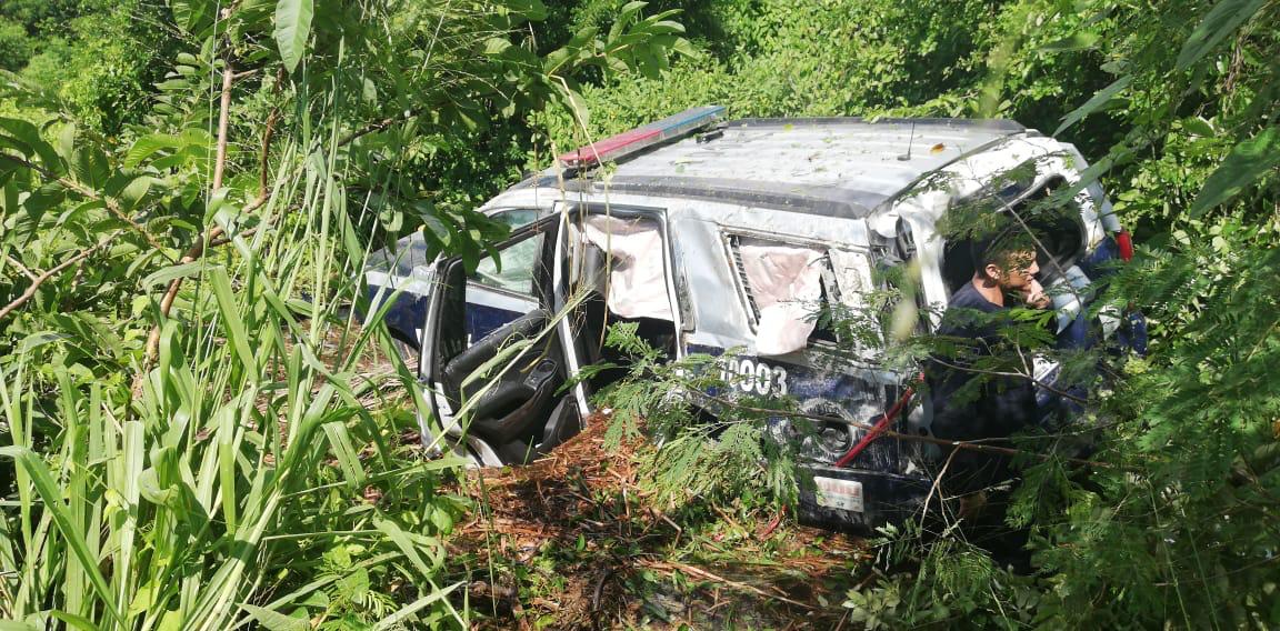 Playa del Carmen.- Un agente de la Policía Estatal, que circulaba en la patrulla 10003, perdió el control de su vehículo, chocando a un automóvil compacto, el que fue sacado de la carretera federal 307, a altura de Punta Maroma, quedando internado en la selva. Dos personas resultaron lesionadas.