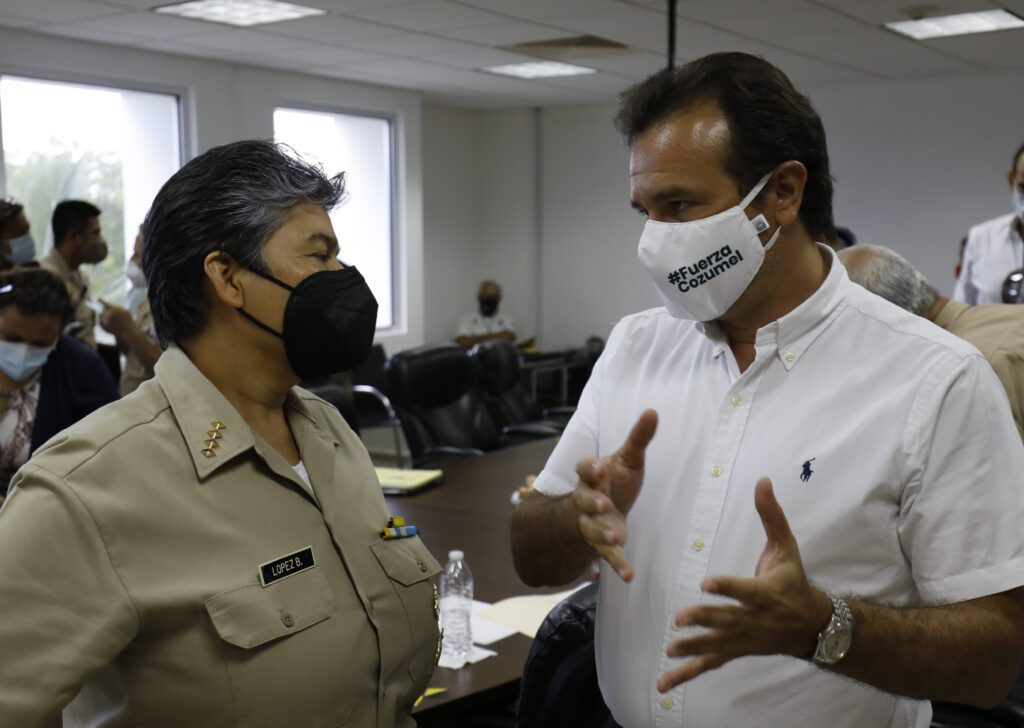 El Presidente Municipal, Pedro Joaquín Delbouis, participó el día de ayer en una reunión de trabajo con autoridades federales, estatales, del ayuntamiento de Solidaridad y representantes de las navieras, en busca de un acuerdo para poner solución al problema de los amontonamientos de personas en los muelles que convierten esos puntos en grandes focos de contagio del Covid-19.