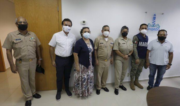 En la reunión también estuvieron presentes, el Contralmirante Rafael Vaca, Director General Adjunto de Capitanías de Puertos; Ana Laura López Bautista, Coordinadora General de Puertos y Marina Mercante; Enrique Ponce de León Castro, Comandante del Sector Naval de Cozumel; Alicia Ricalde Magaña, Directora General de Apiqroo; Javier Toledo Alvarado, Coordinación Federal Contra Riesgos Sanitarios en la Zona Centro de Quintana Roo, y Daniel Maass Michel, Capitán de Puerto de Playa del Carmen.