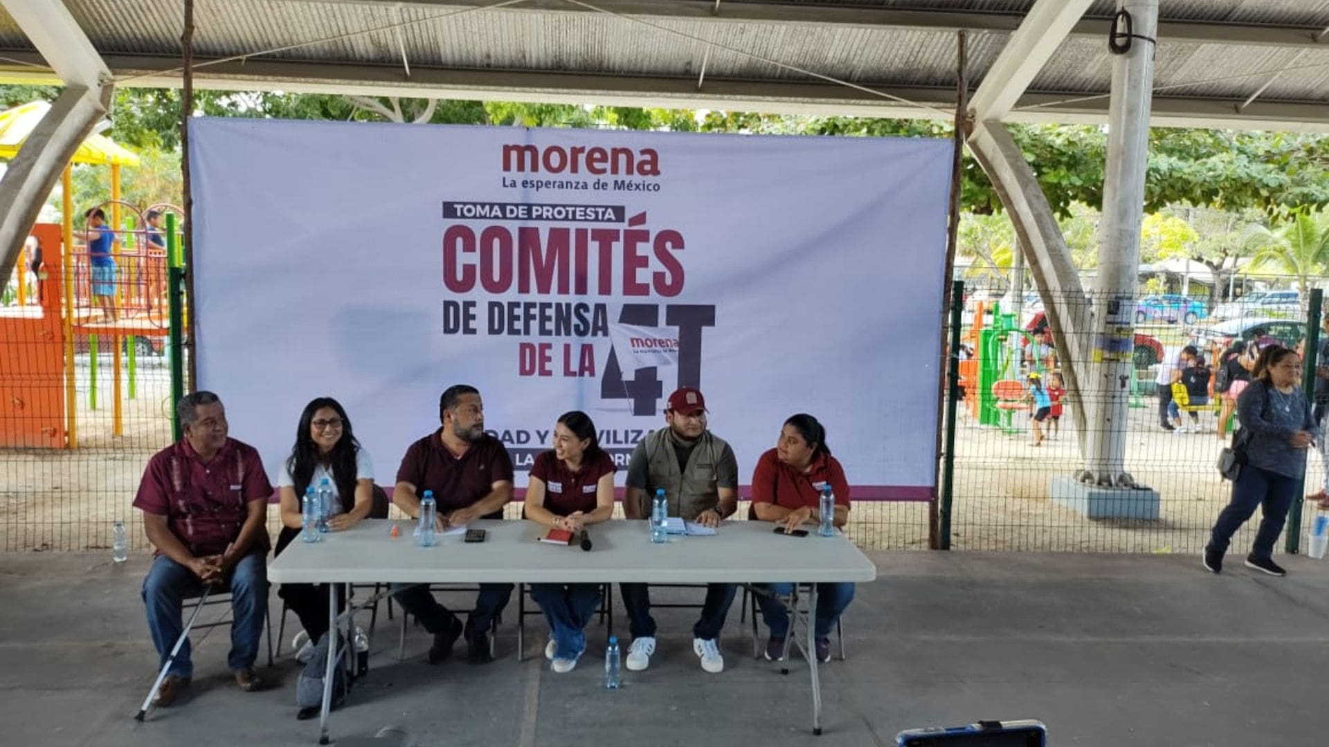 “Hoy lo hacemos aquí en el bello Cancún, hoy estamos inaugurando este evento de los comités de base, tomándoles protesta y oficializándolos. Ya teníamos comités de base nada más les estamos dando la formalidad de venir a tomarles protesta y venir a conocerlos”.