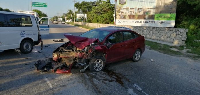 Playa del Carmen.- El conductor de un automóvil dormitó al volante, lo que fue suficiente para impactar contra una van de una empresa turística. El saldo fueron dos lesionados con golpes menores.