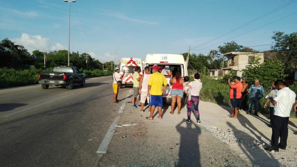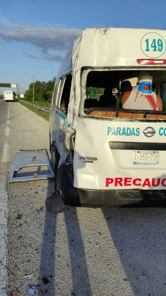 Playa del Carmen.- Un accidente vehicular entre un autobús de traslado de personal y una urvan de transporte de pasajeros se registró esta mañana sobre la carretera federal, a la altura de la colonia Los Sauces.