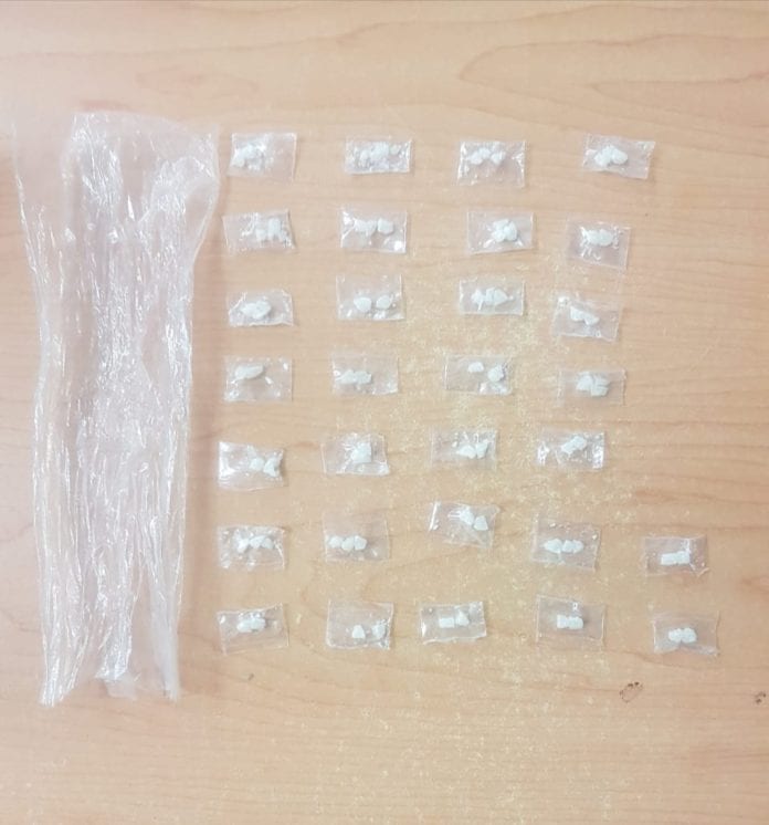 Playa del Carmen.- La Policía Municipal de Solidaridad presentó hoy a un sujeto que fue detenido el pasado martes 23 de junio por posesión de droga, luego de chocar contra una patrulla y querer darse a la fuga; tas la detención y la revisión, encontraron 30 bolsitas con sustancia similar al crack.