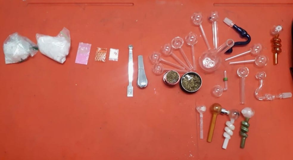Playa del Carmen.– La Unidad Canina de la Secretaría de Seguridad Pública y Tránsito Municipal de Solidaridad, aseguró a una persona en posesión de hierba seca con las características de la marihuana, varios envoltorios de plástico que al parecer contienen droga conocida como cristal y diversas pipas de cristal.