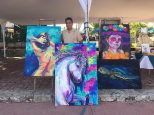 Playa del Carmen, Quintana Roo.-Su nombre es Iván Rosales García y es parte de un grupo de pintores que exhiben su obra en el Callejón del Arte de esta ciudad, pero además es un pintor playense creador de aluxes, yerbanderos y cosmogonías mexicanas, que llegan a todo el mundo.