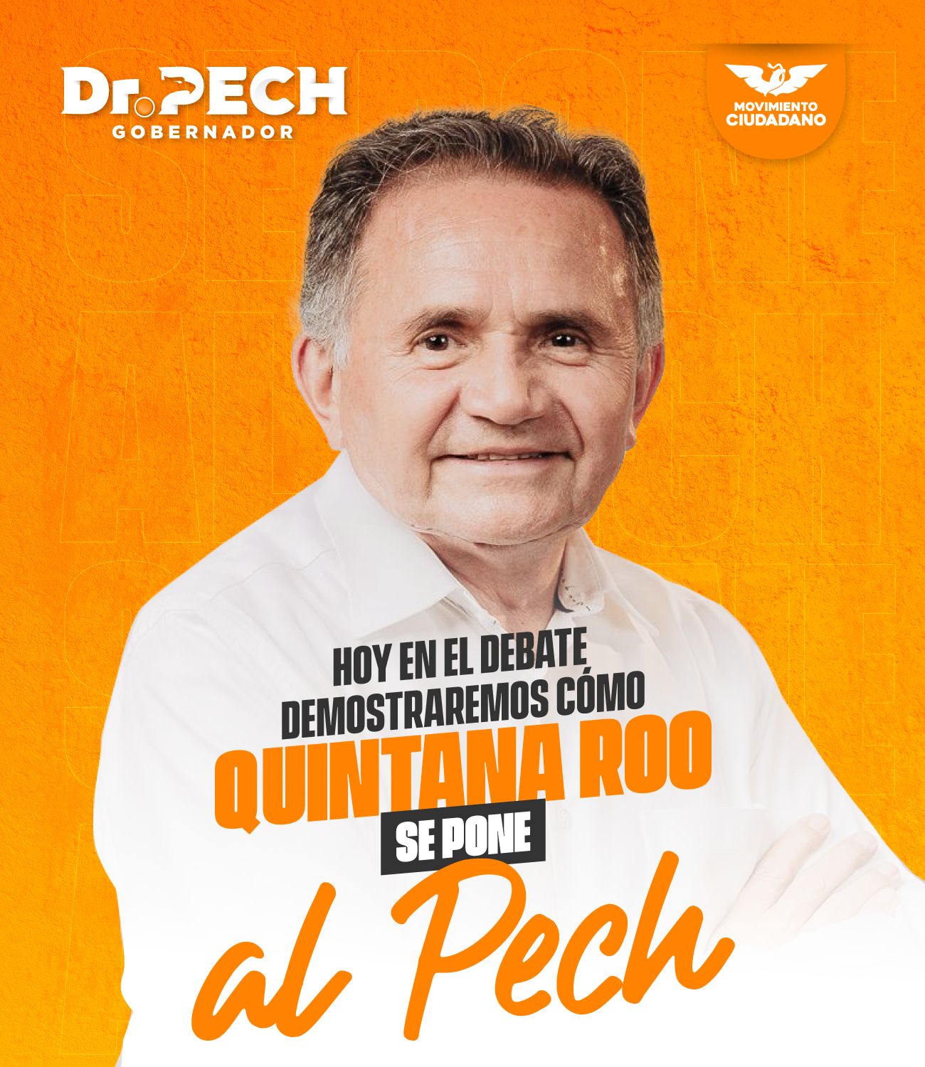 PLAYA DEL CARMEN, 9 de mayo.- El candidato a gobernador de Quintana Roo por Movimiento Ciudadano (MC), José Luis Pech Várguez, señaló que en su participación en el Debate Ciudadano que este día realizará la Coparmex en esta ciudad, “vamos a dejar clara nuestra postura de lo que debe de hacer el gobierno ante la situación que hoy se vive en el estado de descomposición social, inseguridad y deterioro ambiental, lo cual nos pega a todos; hay que hacer un gobierno decente”.