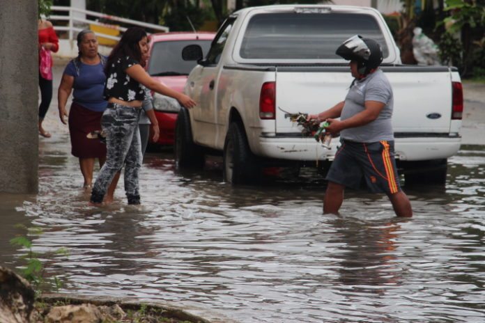 Playa del Carmen, QRoo.-Debido a las tormentas aisladas que este día provocaron algunos encharcamientos en Playa del Carmen, los vecinos retiraron manualmente la basura arrojada por playenses sucios que tiran sus desechos en la vía pública.