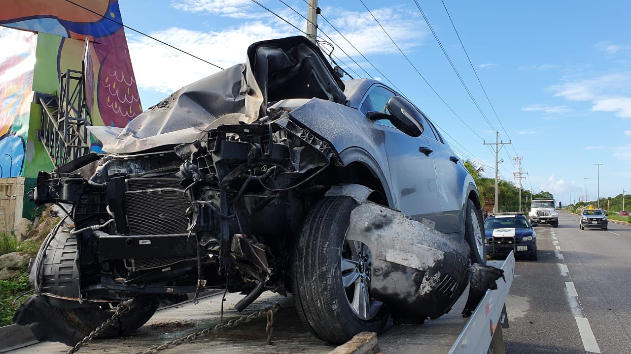 Los hechos ocurrieron cerca de las 9:00 am a la altura del kilómetro 278, cerca de Punta Venado, donde la conductora de una camioneta Kia de color gris se impactó de frente contra un poste de metal ubicado en el camellón de en medio. A su vez el conductor de un Platina se desvió a su izquierda, acabando volcado en el carril contrario.