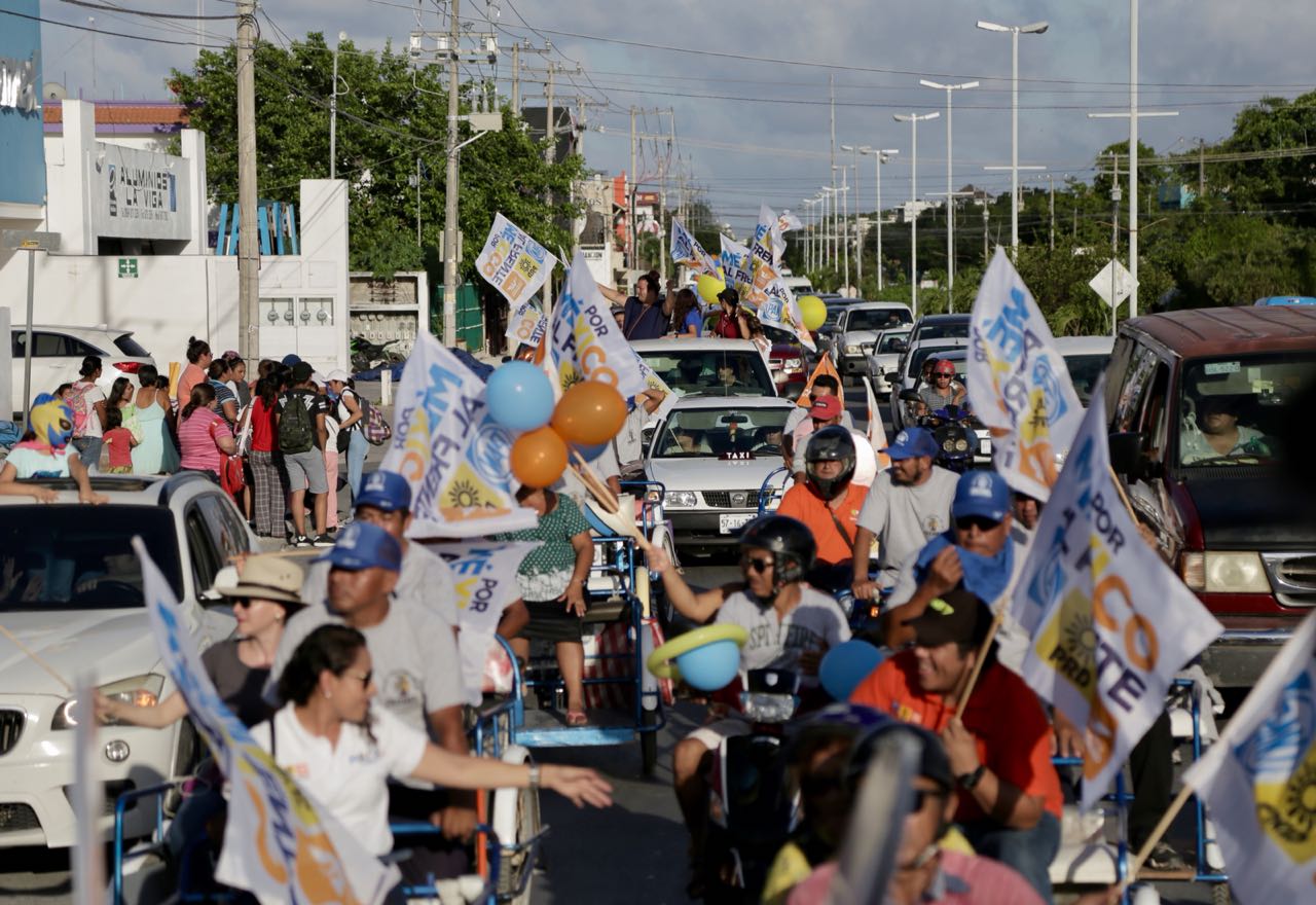 Solidaridad.- Cientos de personas mostraron su apoyo a favor de la candidata a la presidencia municipal de la coalición “Por Quintana Roo al Frente”, Cristina Torres, durante una caravana que recorrió diversas calles del municipio y en la que participación asociaciones civiles, colegios, sindicatos, partidos políticos, grupos de profesionistas, deportistas, estudiantes y ciudadanos de diversas colonias de Playa del Carmen y Puerto Aventuras.