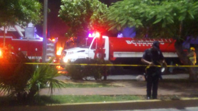 Ante el llamado de alerta, Miembros del Heroico Cuerpo de Bomberos de Playa del Carmen y de Protección Civil Municipal, arribaron a la propiedad ubicada entre las calles 75 y 80, que según se indicó, corresponde a una bodega de plásticos como bolsas, vasos y productos desechables.