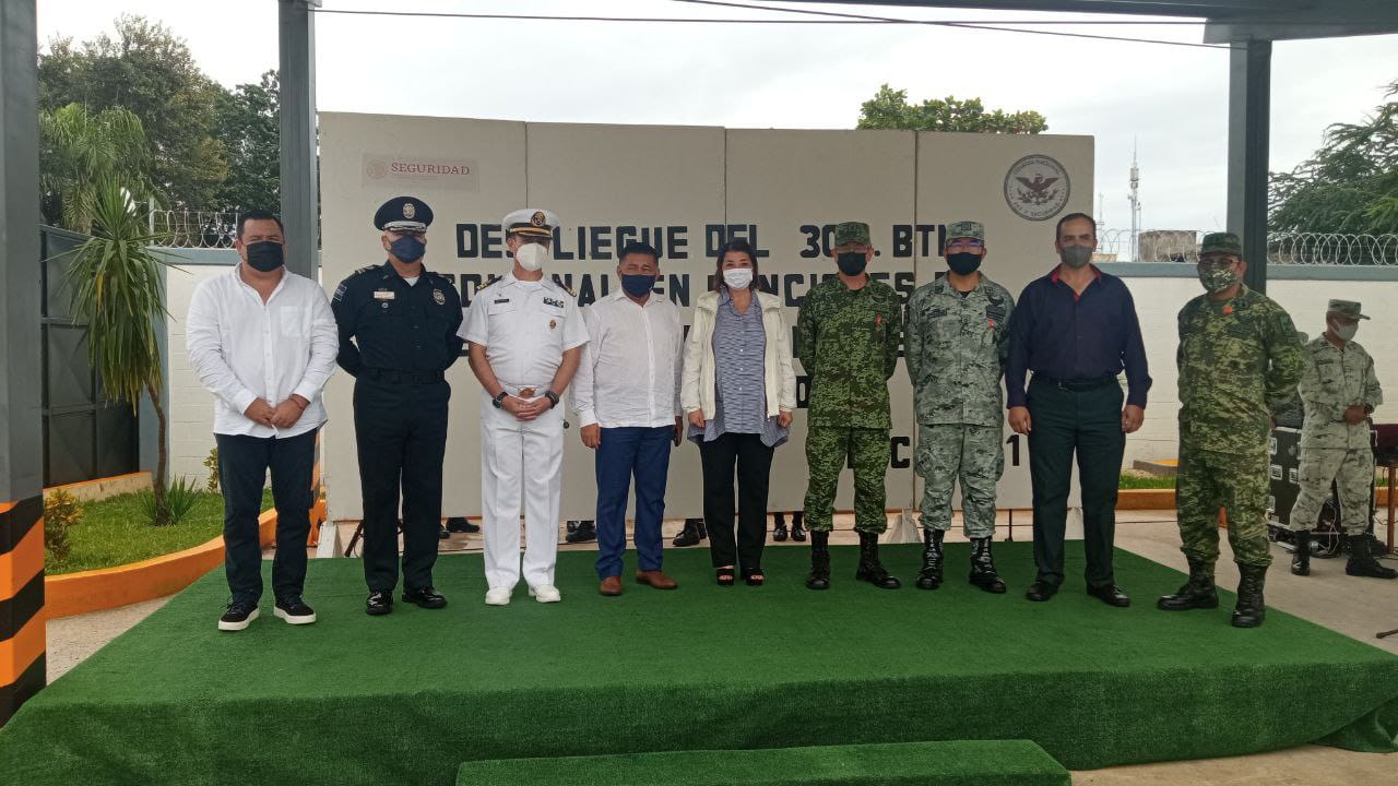 Playa del Carmen.- Mediante un acto protocolario, mandos civiles y militares marcaron el arranque del nuevo batallón turístico de la Guardia Nacional en Solidaridad, con 150 elementos que vienen a reforzar las tareas de vigilancia todo el municipio.