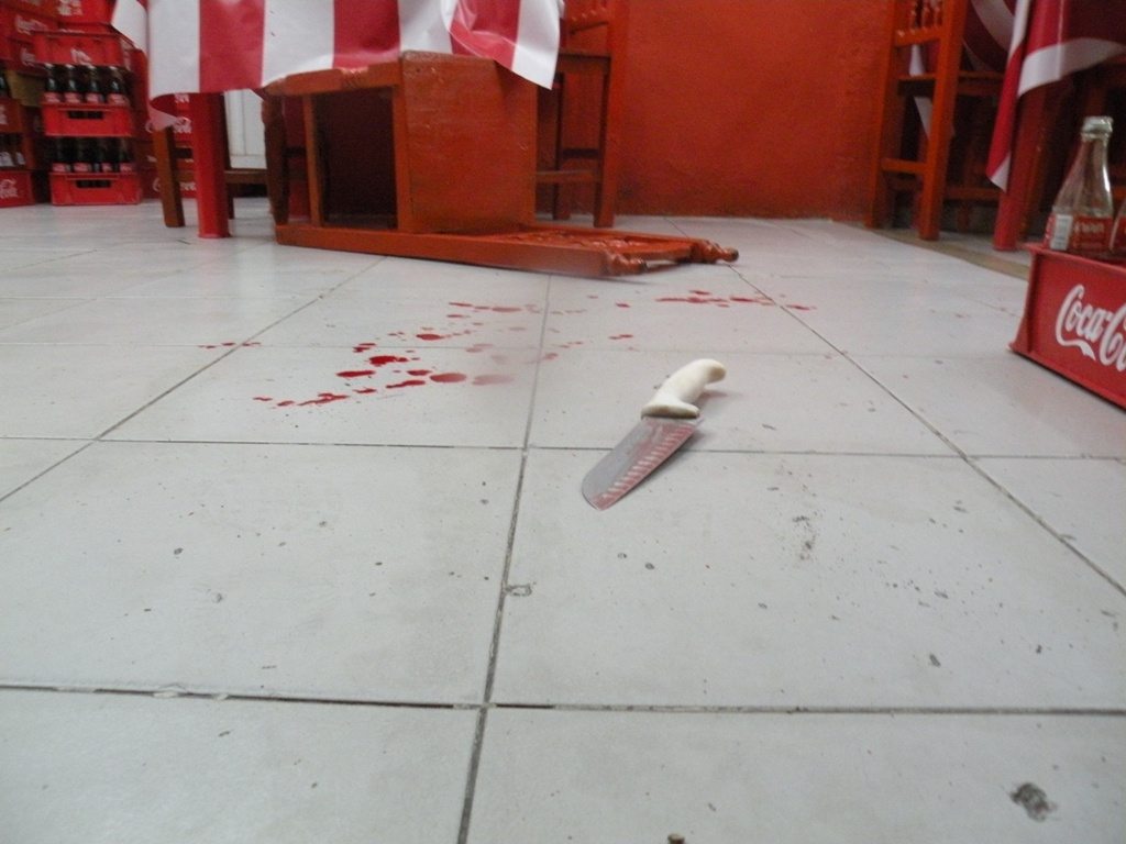 Los hechos se dieron después de una acalorada discusión, ya cuando se habían ido casi todos los comensales. El energúmeno individuo le aventó un envase de vidrio que golpeó la pared y como ella no le hizo caso y siguió cortando limones, le arrebató un cuchillo de 20 centímetros, clavándoselo.