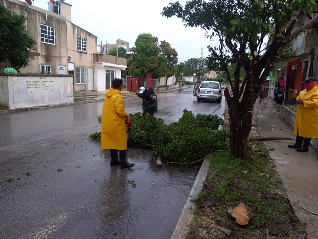Los bomberos atendieron la caída árboles en la colonia Villamar 1 y 2, en tanto personal de Servicios Públicos retiró varios árboles y ramas caídos en el fraccionamiento Puerto Maya, Bosque Real, Misión del Carmen, Palmas 2, Ejido, Misión de las Flores, entre otros. Además, atendieron la caída de algunos postes de luz, así como cables caídos que ponían en riesgo a la ciudadanía.