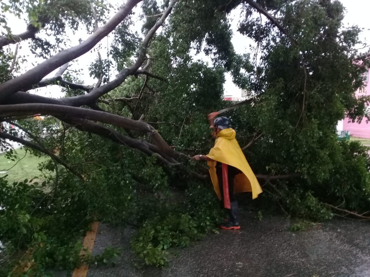 Playa del Carmen, Solidaridad, a 5 de junio del 2020.- En respuesta inmediata, el gobierno de Solidaridad que dirige Laura Beristain Navarrete, por medio del equipo de Protección Civil, atendió los llamados hechos por caídas de ramas, árboles, postes y cables en vialidades principales, así como limpieza de rejillas y pozos de absorción para evitar inundaciones, logrando prevenir mayores afectaciones por las precipitaciones y vientos dejados por el paso de la depresión tropical “Cristóbal”, en el sureste mexicano.