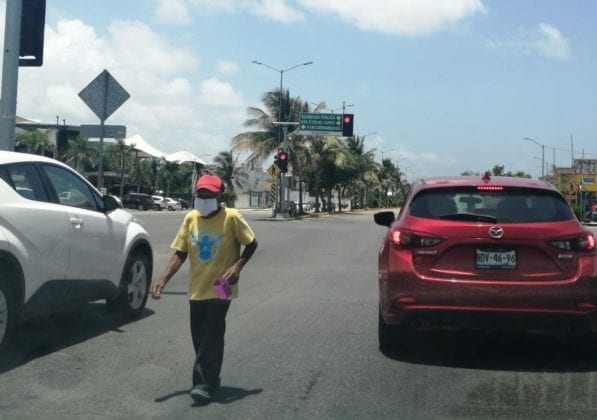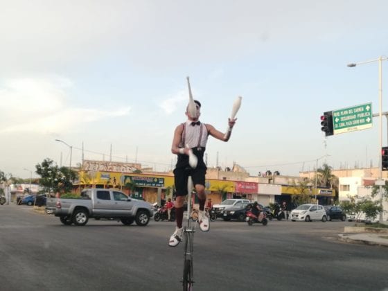 Playa del Carmen.- Debido a la crisis económica derivada de la contingencia epidemiológica que representa el COVID-19, han aumentado los espectáculos callejeros y la mendicidad en los semáforos de playa del Carmen, esto a pesar de los riesgos que esta actividad puede ocasionar.