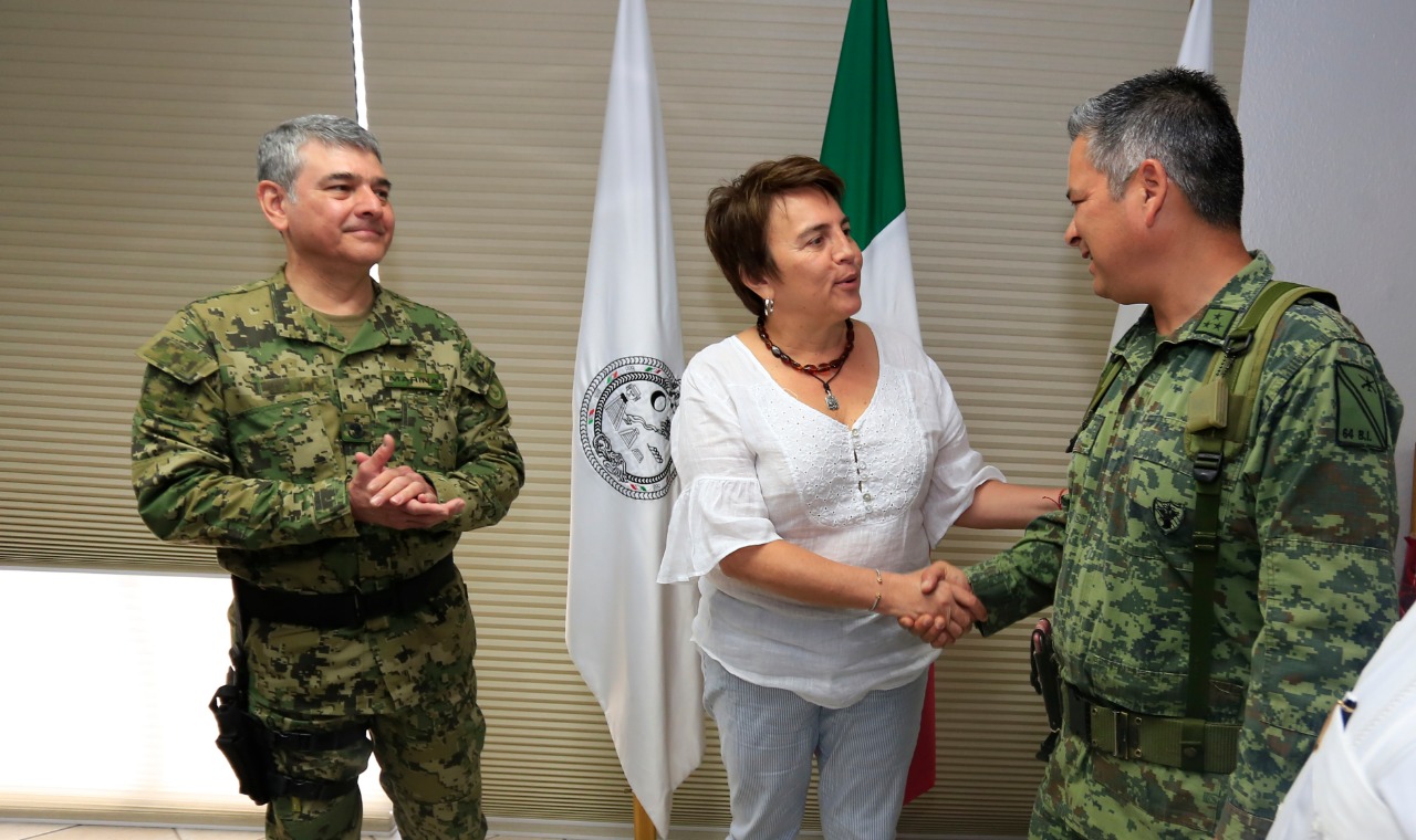 Como parte de estas acciones la alcaldesa sostuvo una reunión de trabajo con el coronel Juan Ramón Corona, comandante del 64 Batallón de la Secretaría de la Defensa Nacional y el almirante Luis Alfonso Leglise Escamilla , comandante de la zona naval en Cozumel de la Secretaría de Marina, a quienes les agradeció por todo su respaldo en las tareas que se realizan a diario, de manera cercana y coordinada con las fuerzas policiales, para conservar la paz social en el municipio.