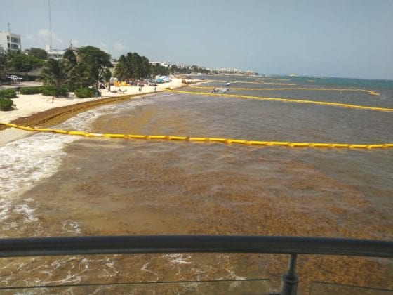 Cabe recordar que desde el jueves pasado, algunos restauranteros se quejaron por la ineficiencia de las barreras antisargazo, que sólo lograron acumular grandes cantidades de la macroalga que no fueron retiradas durante días, por lo que comenzó a desprender un fétido olor.