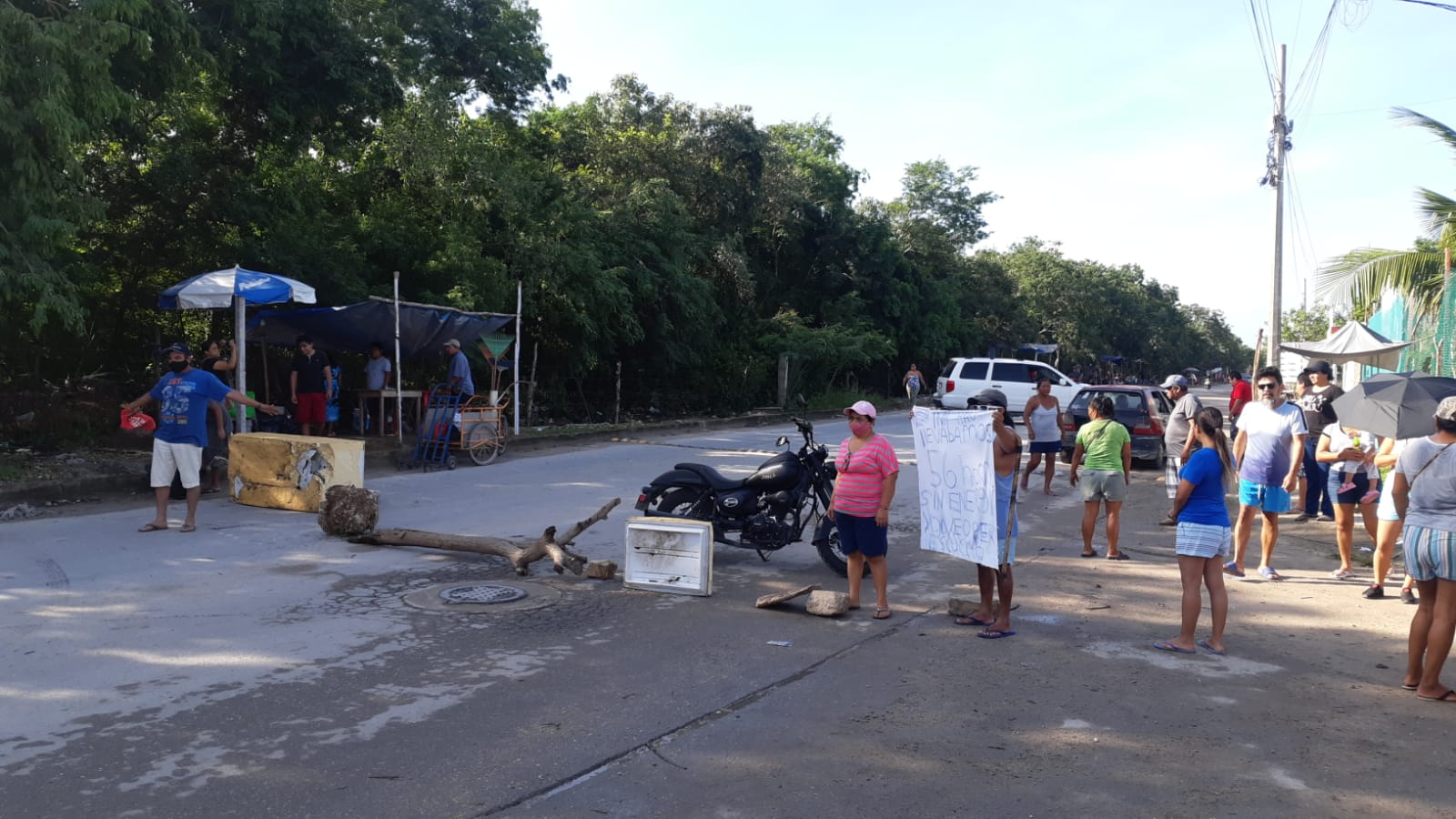 Playa del Carmen.- Un grupo de habitantes del fraccionamiento InHouse mantiene bloqueada la avenida Lilis, para exigir que se les reestablezca el servicio eléctrico, suspendido por la CFE debido a la existencia de conexiones ilegales. Los inconformes señalan que la CFE actuó de manera drástica, sin aviso previo, y afectando a familias que sí pagan por su consumo.