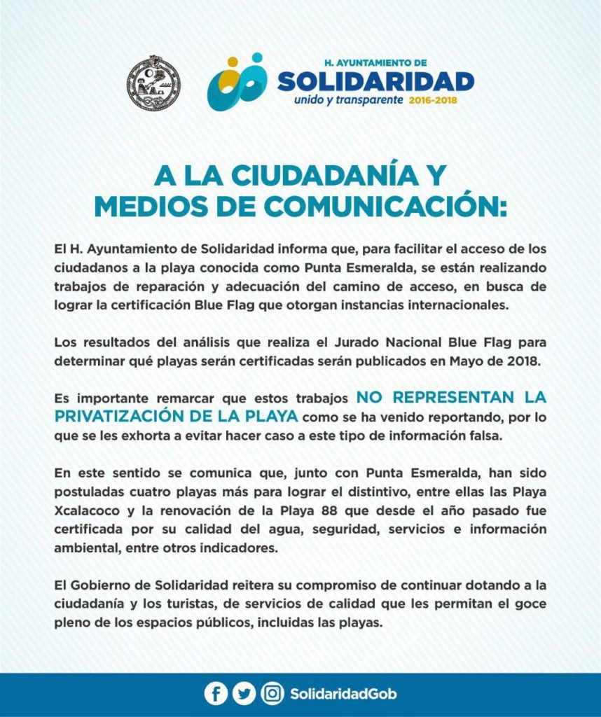 Junto con Punta Esmeralda han sido postuladas cuatro playas más para lograr el distintivo, entre ellas las Playa Xcalacoco y la renovación de la Playa 88.