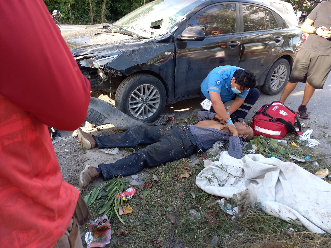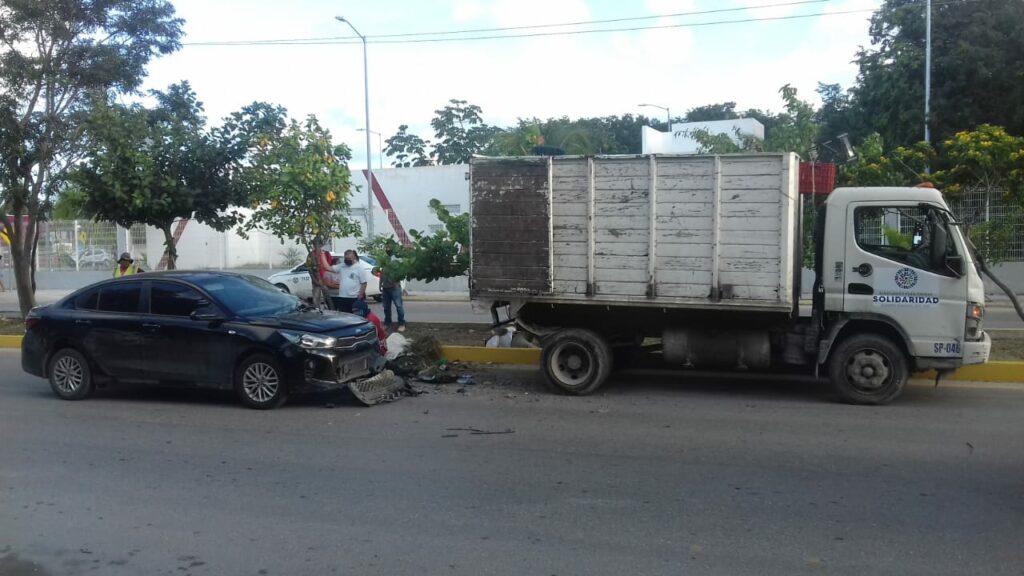 Playa del Carmen.- La mañana de este sábado el conductor de un auto marca KIA, color negro, atropelló a trabajadores del Ayuntamiento cuando recolectaban basura vegetal sobre la avenida Xel-Há, a la altura de Misión del Carmen, en el fraccionamiento La Guadalupana.