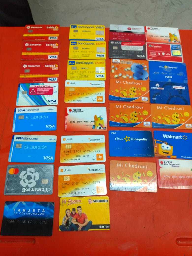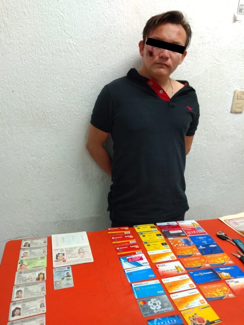 Al revisarlo, le descubrieron nueve credenciales de elector, una licencia de manejo, un pasaporte y 30 tarjetas de todo tipo, de débito y hasta de cliente frecuente del supermercado o del cine.