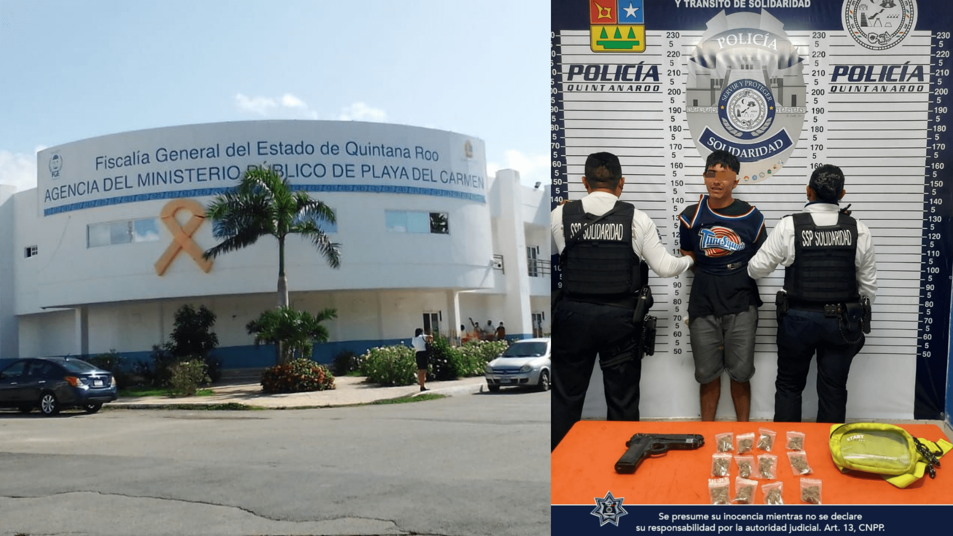 Vicente “N”, de 22 años de edad, procedente de la ciudad de Chetumal, tenía en su posesión una réplica de arma de fuego y 12 bolsas con narcóticos, por lo que fue asegurado y puesto a disposición de la Fiscalía General del Estado para los trámites legales correspondientes.