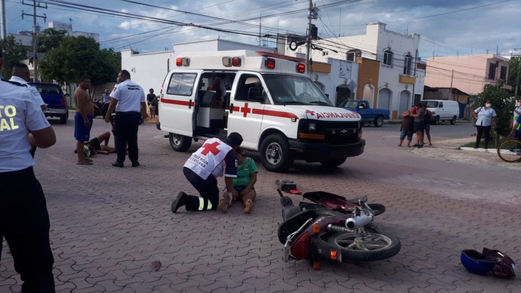 Playa del Carmen.- Un camión usado como “Food Truck” embistió a dos mujeres que circulaban en motocicleta en la avenida Pintores con 15, en la colonia Nicte Ha e intentó darse a la fuga.