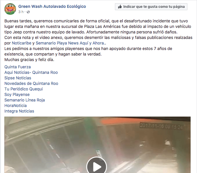 Algunos medios locales publicaron una nota sobre un “accidente” en el autolavado ecológico Green Wash de Plaza Las Américas.