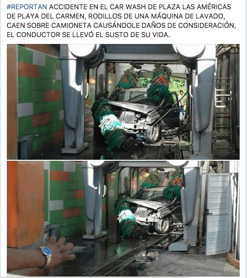 Playa del Carmen.- Algunos medios habían revelado que un auto había sido destrozado por una máquina del autolavado Green Wash, pero la empresa dio su propia versión.