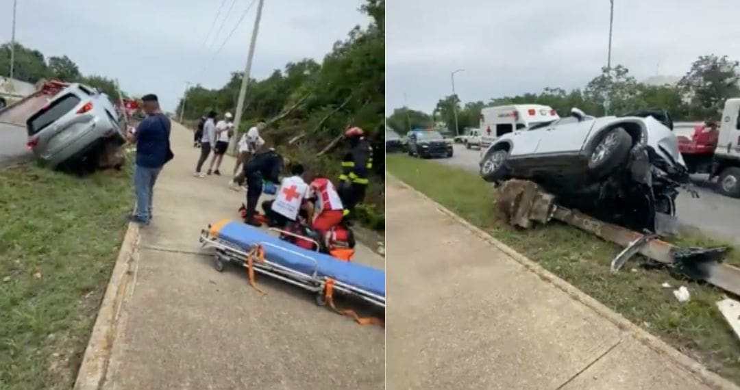 El percance ocurrió en el tramo comprendido entre las avenidas Lilis y Flor de Ciruelo en Villas del Sol, cuando el conductor de una camioneta Mazda CX-5, con placas del estado de Yucatán, circulaba a exceso de velocidad en sentido poniente a oriente.