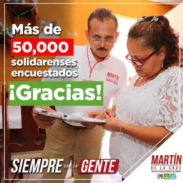 Playa del Carmen,Quintana Roo.-Continúa Martín de la Cruz, Candidato a la Presidencia Municipal de Solidaridad de los partidos PRI-PVEM-Panal, por la senda de las artimañas y mentiras con datos falsos sobre la supuesta consulta ciudadana que realizó en Solidaridad y una campaña que ha llevado literalmente hasta el panteón, a ver si los muertos votan por él, porque tiene nula preferencia según las encuestas.