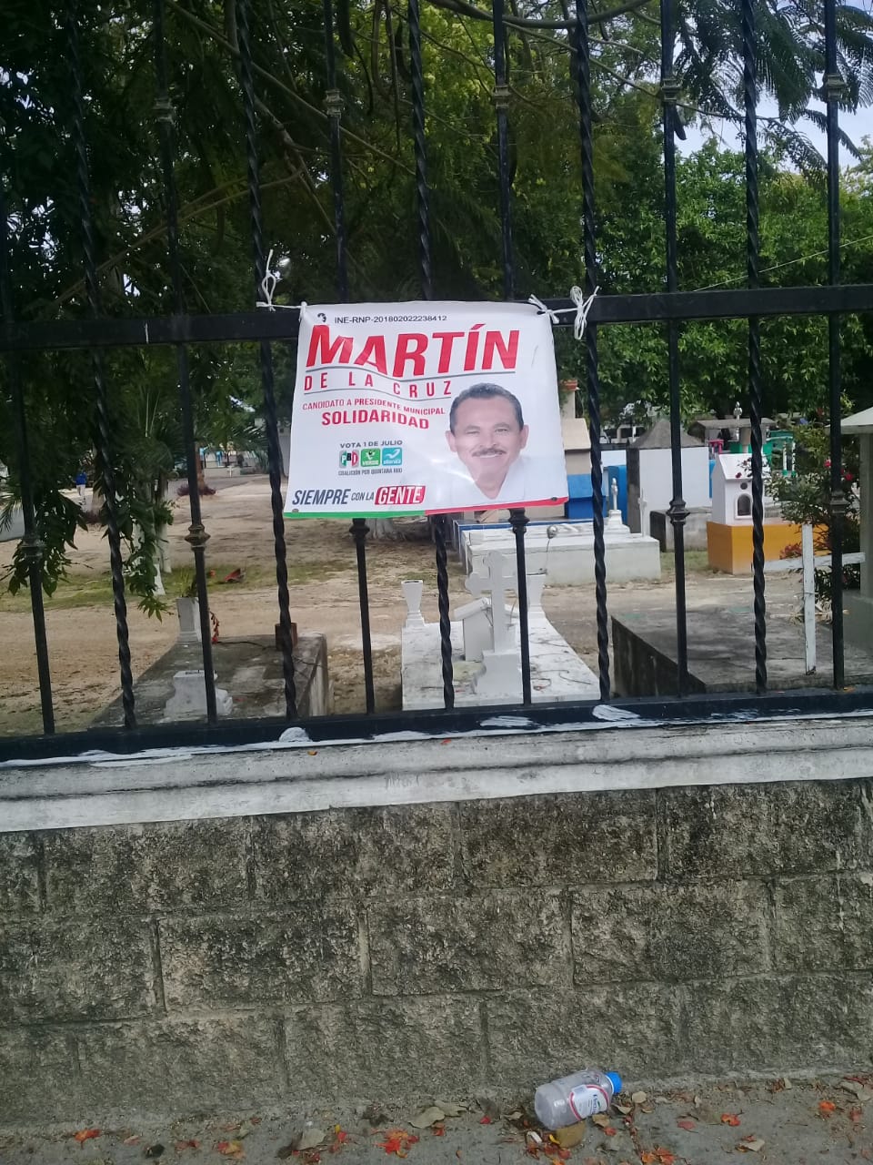 No conforme con eso, como los ciudadanos no le abren la puerta a la gente de Martín de la Cruz, ahora los solidarenses se topan con su imagen electoral hasta en el panteón, lugar que no se salva de sus intentos desesperados porque en las encuestas está abajo.